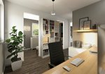 Auch das Obergeschoss zeigt sich im klaren Baustil des Flair 124. Hier befinden sich drei Räume, die Sie als Schlaf-, Kinder-, Gäste- oder Arbeitszimmer nutzen können. Dank großer Fenster wirken alle Zimmer hell und freundlich.