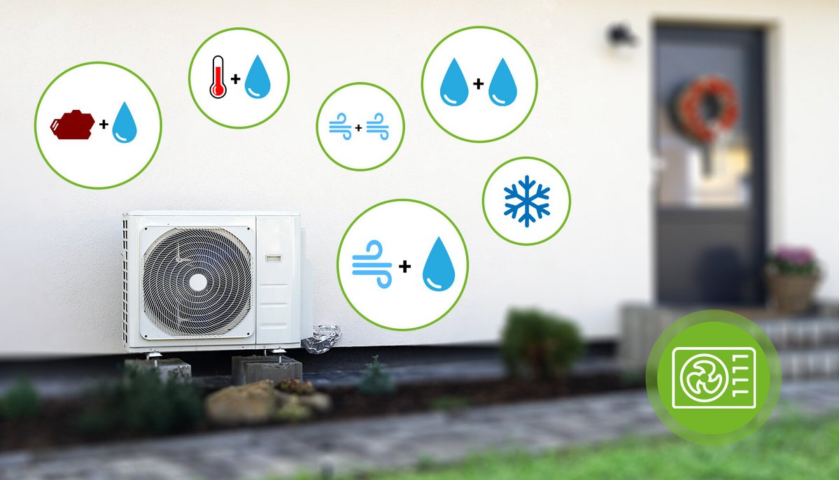 Bei einer Luft-Wasser-Wärmepumpe können Sie Energie aus der Umgebungsluft ziehen. Mit einem Split-Gerät (Innen- und Außeneinheit) sind Sie in Kombination mit einer Flächenheizung gut aufgestellt und können auch bei Minustemperaturen Wärme gewinnen.